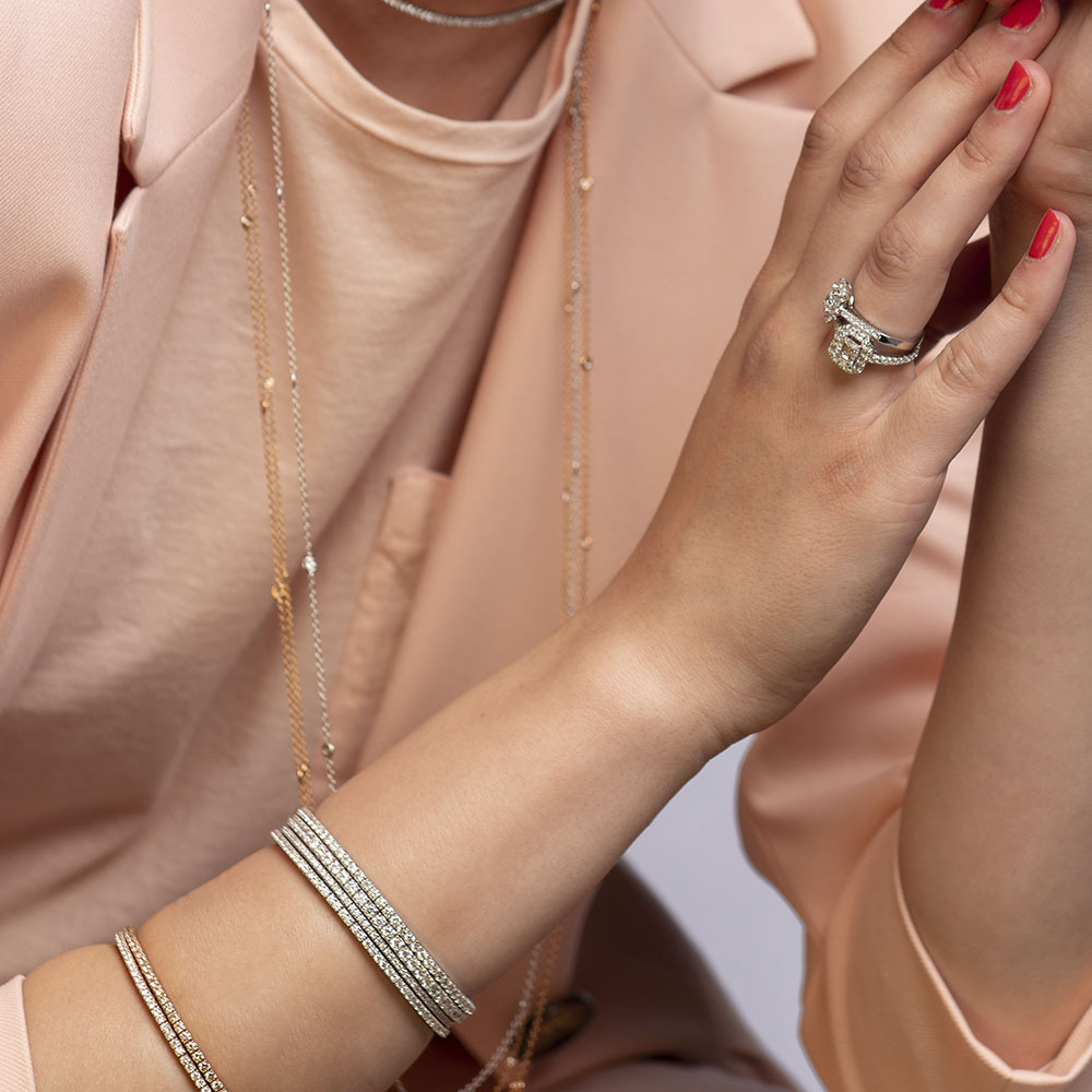 Te presentamos esta pulsera extensible de brillantes brown de la colección Magic. Pulsera extensible en oro rosa, con 80 diamantes brown talla brillante, 3.90 quilates.