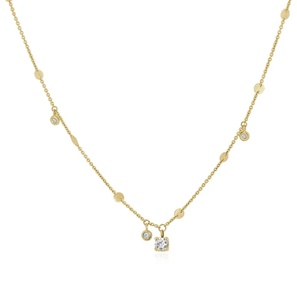 Collar modelo CEDRO realizado en oro rosa primera ley. Collar con 1 colgante cedro con 1 diamante blanco talla brillante peso 0,15 quilates, color E y pureza VVS + cadena forsat con 1 diamante talla brillante en chatón peso 0,01 quilates + 2 diamantes BROWN talla brillante en chatón peso total 0,03.