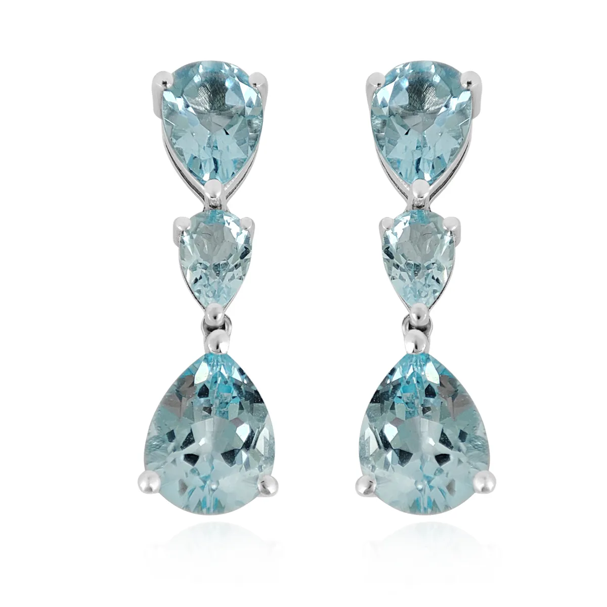 Pendientes realizados en oro blanco 1ª ley con 6 topacio sky talla pera con peso total de 6,89 quilates.